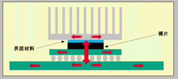 | 圖1:帶散熱器的覆晶元件的傳熱。 |