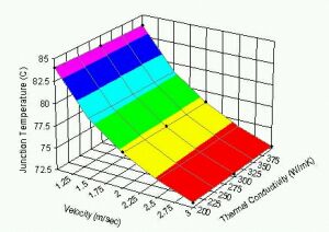 | 圖7:結溫是流速和熱導係數的函數。 |